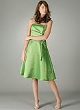 Features - Great for holiday, prom, bridesmaid, homecoming, evening gown or formal. Product Description Classic satin strapless cocktail dress with boned bodice, floor length, fully lined, bow detail, matching satin scarf and optional spaghetti straps included, zip back. Customer Reviews DETAILED description & EASY fix suggestion for the "large bust" issue. Date: 2009-03-03 | Rating: 5 I purchased this dress in black for my bridemaids, and they are PERFECT! The dress gives a nice hourglass appearance to those who are a bit wide in the mid-section and accents beautifully those who already have a great figure. DESCRIPTION: It is VERY well made, especially for the price! It is equivilent to a $125-150 dress at Dillard's or a $200 dress at any bridal shop. The fabric is nice, thick, quality satin. The bodice is fully lined with boning in strategic areas to help provide that hourglass look as well as with holding the dress up on those "blessed" in the bust area. The skirt has a detached lining reaching to the floor with mesh material from about the knee down. The bow at the waist has 2 streamers hanging from it that are a foot long or so. It is easily detached (only held on with a few whip stitches) but we kept it on. The dress becomes plain without it. However, Im sure replacing it with a brooch of some sort or sash would be beautiful as well. The dress comes with a sash/shoulder wrap that is about a foot wide and 4 feet long (give or take, i didnt measure it)and spaghetti straps to attach if needed. However, if you use the straps, they will have to be sewn on because there are no hooks on the dress. Also, another review mentions a loop on the sash to hook it to the dress. The loop is just there as a way to hang it on the hanger. EASY ALTERATION: Before purchasing this dress, I read several reviews stating the dress is large in the bust, and they were right, kinda... I ordered 2 dresses for girls that are both pretty "busty"(size C-D cups). One girl is rather thin, and usually has to go up a size to allow room for her "girls", then take it up at the waist. However, I stuck to the sizing chart when ordering, and suggest everyone order accordingly. The dresses fit perfect everywhere but at the top seam of the dress. Each girl had plenty of room in the bust; however, the dress doesnt taper back in toward the shoulders as much as it should. This resulted in the top of the dress standing away from the chest and allowing anyone looking from above to see straight down into their "business". So, we put a "dart" on each side midway between their underarm and nipple (sorry, not trying to be x-rated, but best way to describe.) What I mean by "dart" is at the location mentioned we took about a 1/2 inch up. The "dart" goes down towards the floor at about a 45 degree angel and gradually takes up less material until there is nothing left to take up. It ended up about 2 1/2-3" long. This pulled the top of the dress flush to the girl chest and no longer allowed full visual access to all their business. It also flatters their bustline much more and allowed us to not have to use straps. If you have a girl that is a bit small in the bust, the dart should still probably only be 3" long max, but you will begin with taking more than a 1/2 inch out of the dress. I believe they make it this way so most everyone will fit, but you may have to take it up on some. Trust me! Putting this dart in the very top is MUCH easier than redoing the entire bodice because they have big boobs. Especially since there is boning in the bodice. I hope this helps and enjoy!!!!!! Beautiful & a Great Price Date: 2008-09-27 | Rating: 5 I recently got married, and my bridesmaids and I are scattered across the country, so I took a chance and told them to order these through Amazon to make it easiest. They got them in Lilac, and they were beautiful! The other reviewers are correct that the bust is large in these dresses, but I can see why they did it, as some of my bridesmaids fit perfectly in it, as they were fuller chested, and the others had to have it taken in. (A note regarding the other reviewers: If you think that you are going to be able to buy any bridesmaid dress without having to most likely get some alterations done, you are wrong) Basically they are defaulting it so that everyone has at least enough material. The alterations can be done at home for taking it in on top, as it is a pretty easy fix with the dress design as there are seams on both sides under where the arms lay, and the seams end at the top of the waist where there is a belted bow. The length worked for everyone, and the heights ranged from 5'2"-5'8"as they were wearing heels. A great value and absolutely beautiful for a wedding or cocktail party! good dress for reasonable price Date: 2008-03-25 | Rating: 5 i found the dress and immediately sent the link to my bridesmaids. they both looked so stunning and feminine in it. it looks also good on plus size ladies (size L). i ordered it lilac, size XS, when i was maid of honor on my friend's wedding. it looked wonderful on me as well. indeed, those dresses are more beautiful then on the picture. and it suits well. it comes with nice-width stripes, and scarf. and it's relatively cheap!! i washed it in my washing machine (gentle cycle), and it came out fine. you have just to rinse it one more time, and then hang it. i'd love to re-sell it for lower price to somebody. Love Them! Date: 2008-07-25 | Rating: 5 Very nice, good quality, comes with shawl, size charts were mostly accurate they all were a little long so will need to be hemmed. Amazing Customer Service! Date: 2008-09-02 | Rating: 5 Sylvia is amazing.Good ol fashioned customer service.They stand behind their product and are very nice to deal with.The dresses were georgous.If u need multiples just make sure u call to get the same dye lot. | |||||